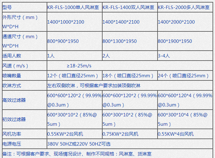 四、云南風(fēng)淋室廠家承接的無塵車間風(fēng)淋室常規(guī)的參數(shù)尺寸
