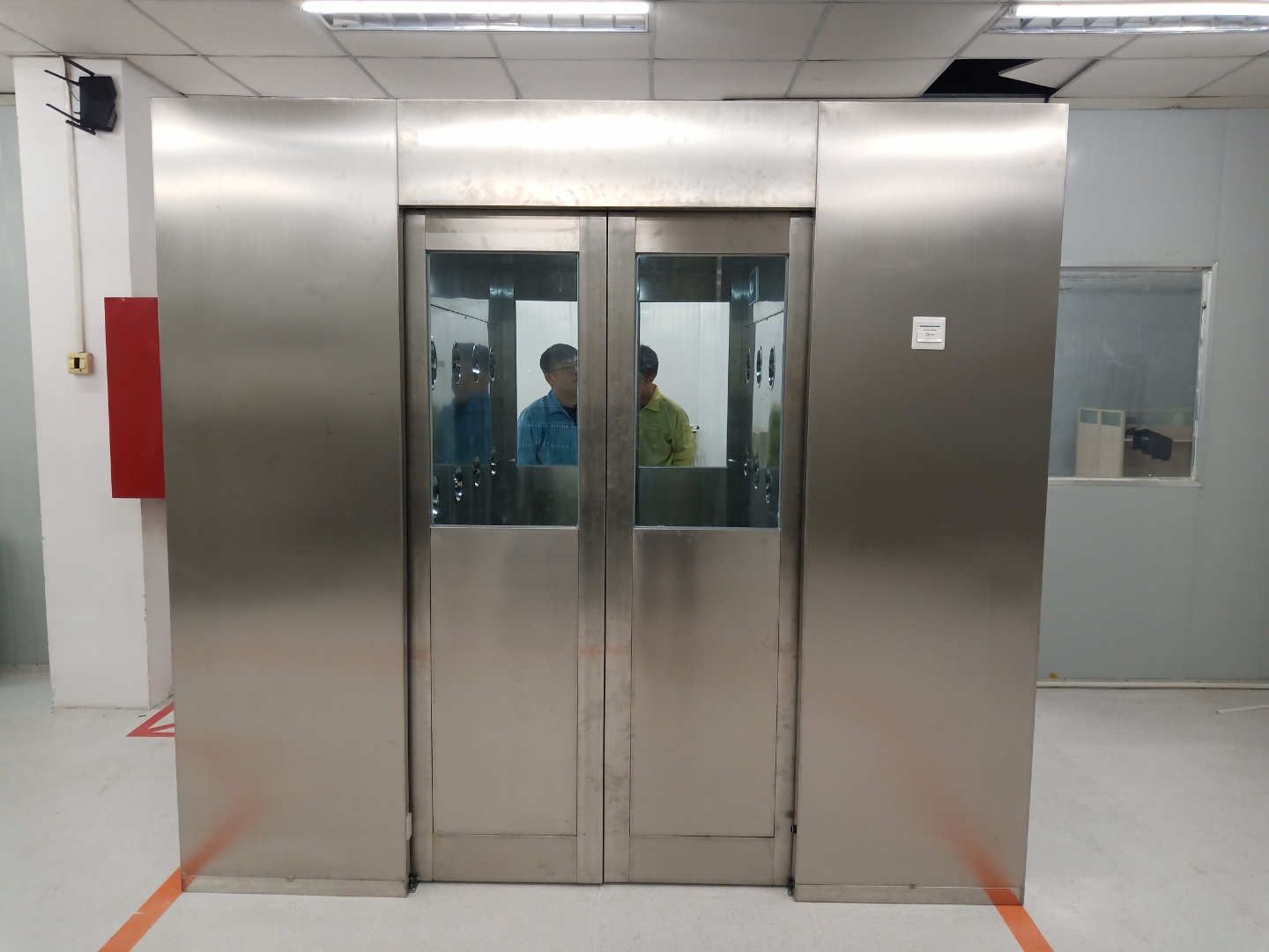 6、全不銹鋼風淋室不吹淋,除了以上三點外,還需檢查風淋室箱體內(nèi)部的急停鍵是否按下,如急停鍵為經(jīng)色時,風淋室則不會吹淋;要重新按一下急停鍵則可正常工作。